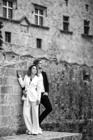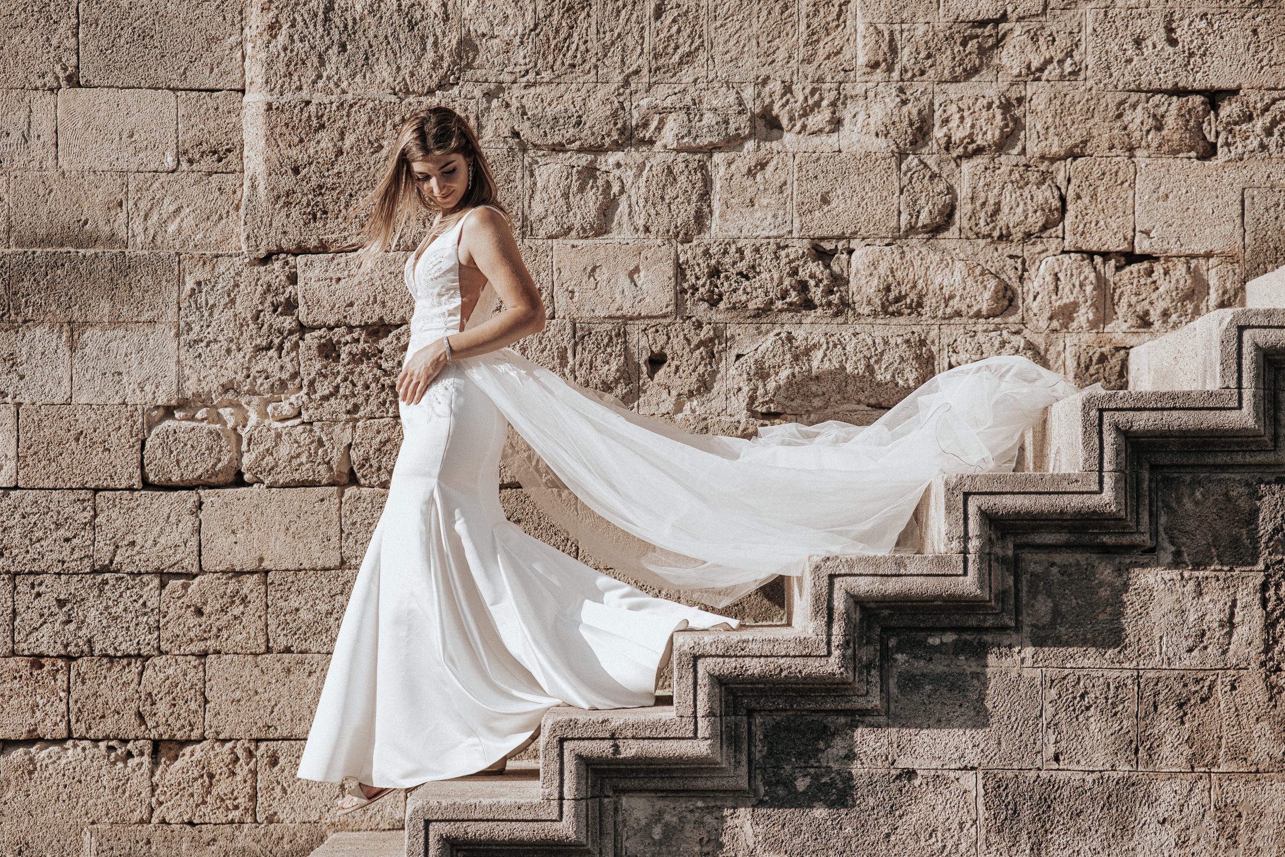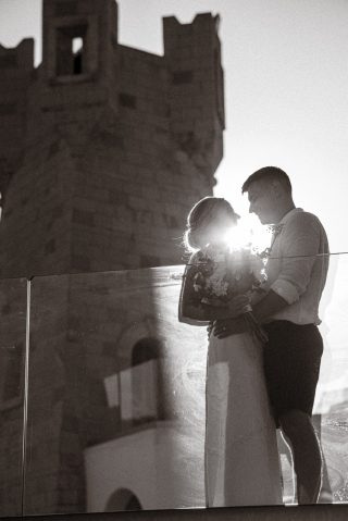 Vintage-inspired Rhodes wedding photography with timeless elegance. Soft tones, romantic details, and classic style — bringing old-world charm to your island celebration.